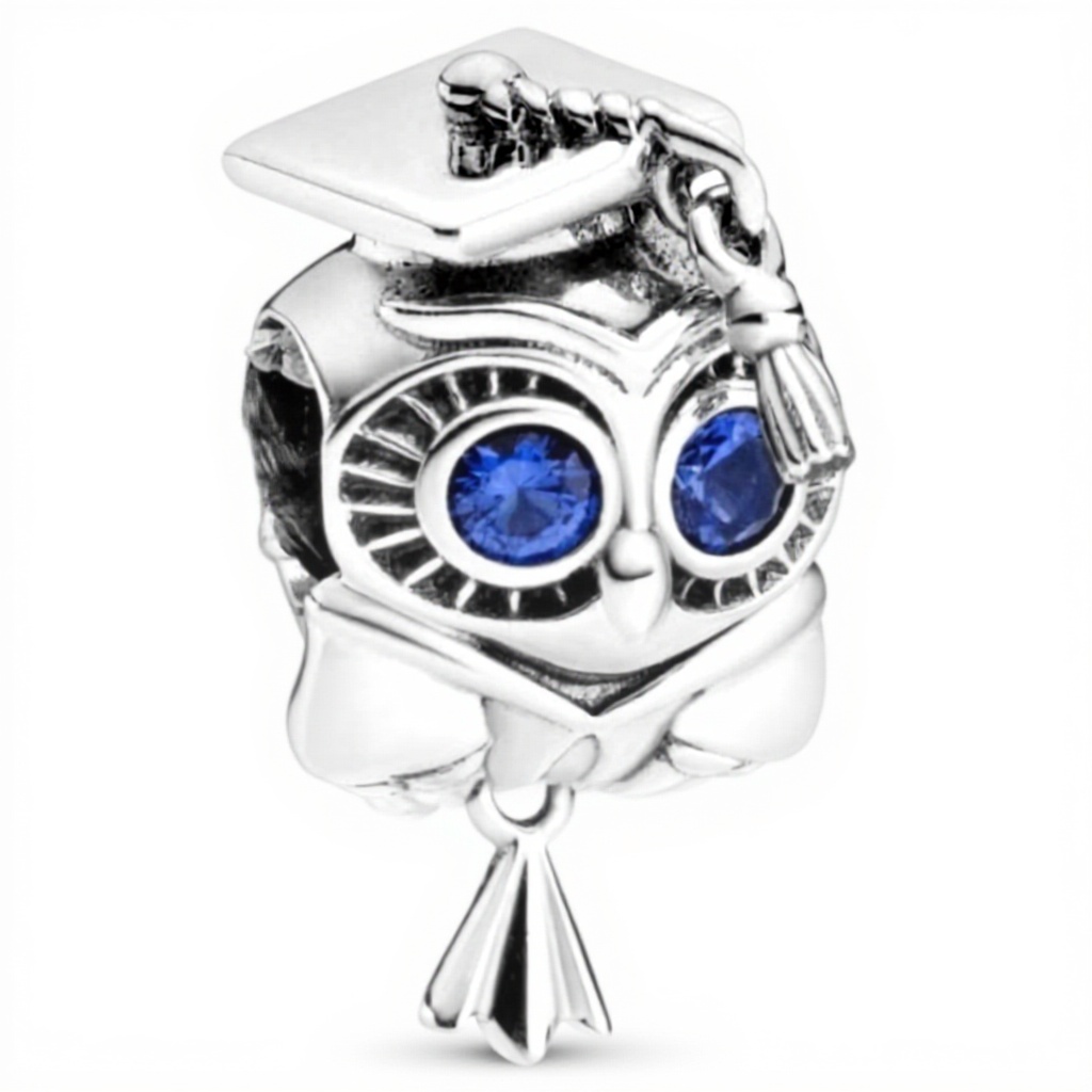Scopri il charm Pandora Gufo, un simbolo di saggezza e successo accademico realizzato in Argento Sterling 925. Questo ciondolo unico, con occhi in cristalli blu scintillanti, è progettato per celebrare i traguardi educativi e personali, aggiungendo un tocco di eleganza e significato ai tuoi bracciali Pandora Moments.