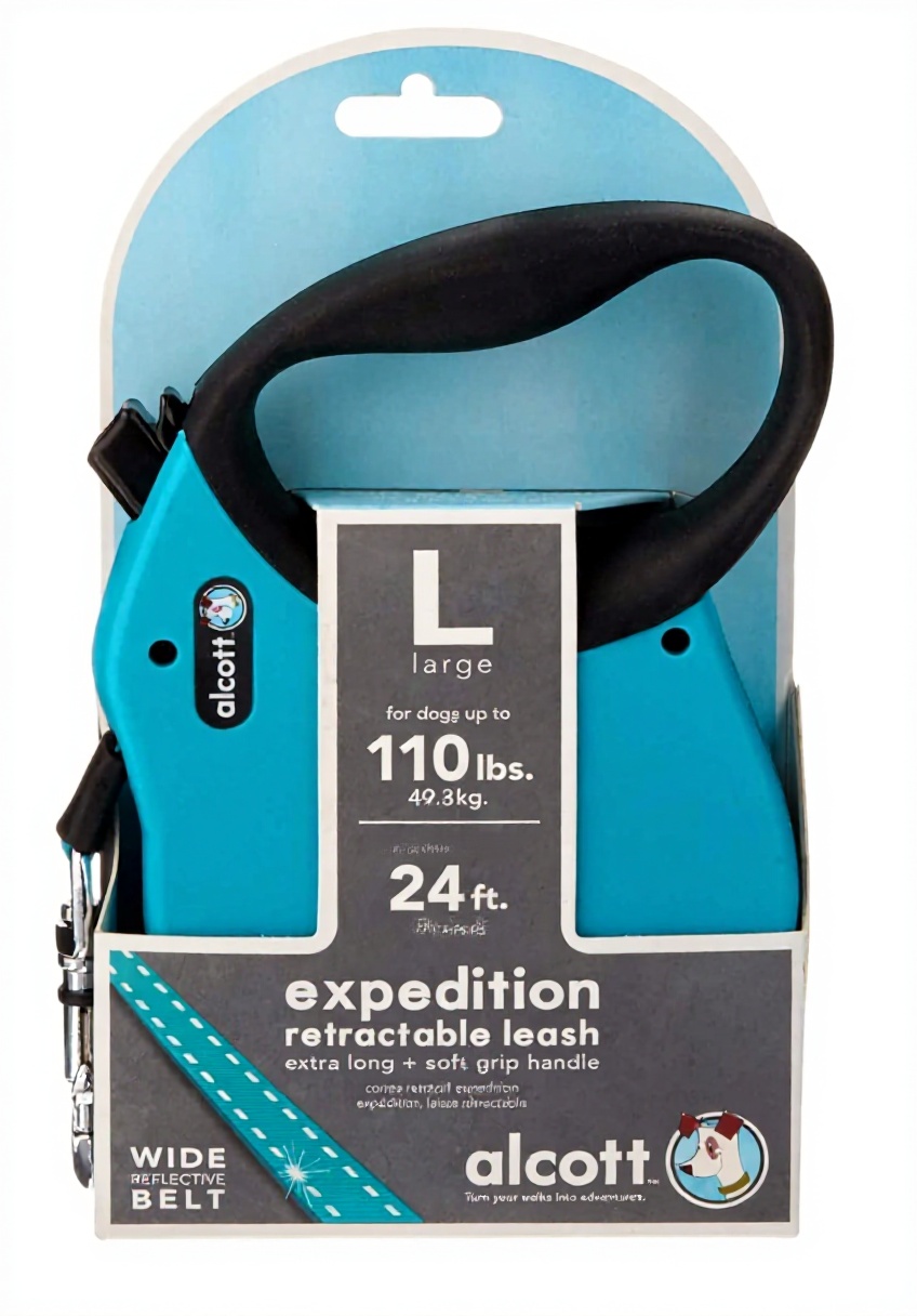 Il guinzaglio retrattile Alcott Expedition si distingue per la sua cintura piatta da 24 pollici con cuciture riflettenti, che offre maggiore visibilità e sicurezza durante le passeggiate serali. Non si tratta di un cavo rotondo o sottile, ma di una fascia robusta progettata per resistere all’usura quotidiana. L’impugnatura super morbida garantisce una presa confortevole, riducendo l’affaticamento della mano, mentre il meccanismo di ritrazione fluido permette di regolare facilmente la lunghezza.