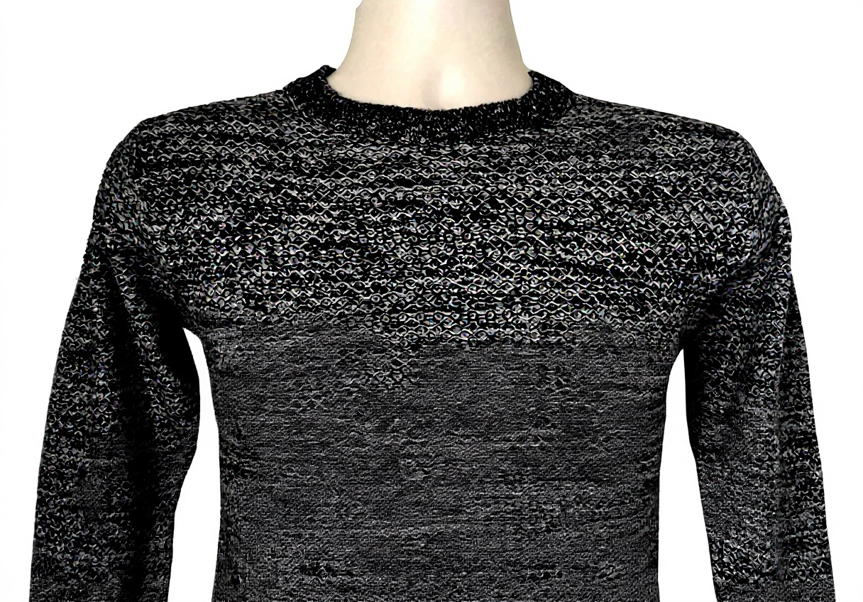 Realizzato in tessuto 100% acrilico elasticizzato, questo pullover offre una morbidezza eccezionale e un’ottima vestibilità. I polsini e l’orlo inferiore a costine assicurano una chiusura precisa, mentre il girocollo contribuisce a un design pulito e contemporaneo, ideale per un comfort prolungato.