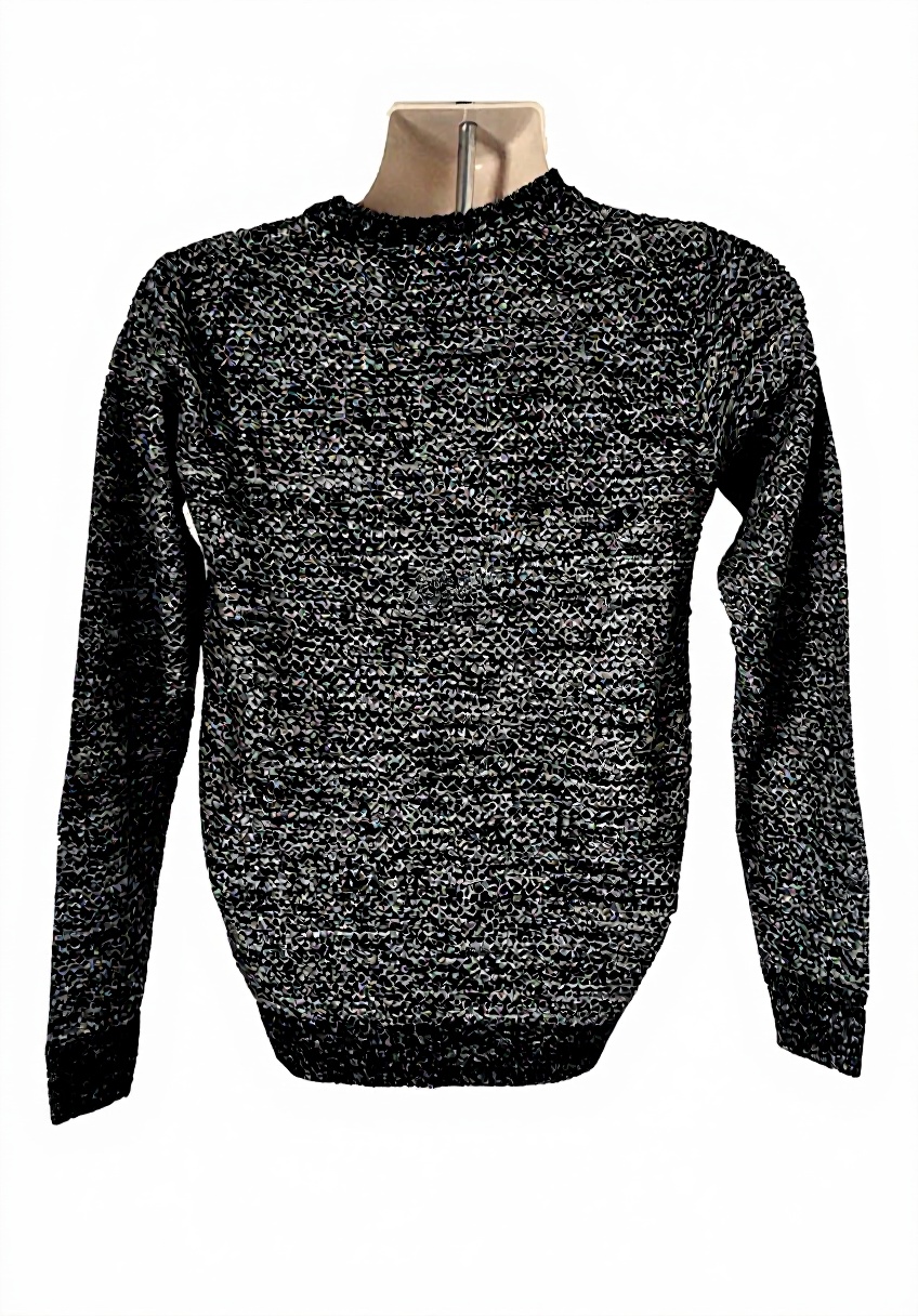 Il pullover è realizzato in 100% acrilico, un tessuto elasticizzato e morbido che garantisce comfort e resistenza nel tempo.