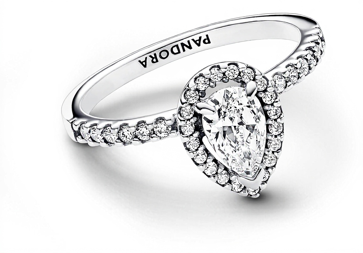 L’anello PANDORA Timeless presenta una pietra a forma di goccia in zirconia cubica incolore, leggermente rialzata su una corona di pavé che ne esalta la brillantezza. Realizzato in argento sterling, combina un design classico con dettagli moderni, come il nastro liscio nella parte inferiore e pavé in quella superiore, per un effetto elegante e duraturo.