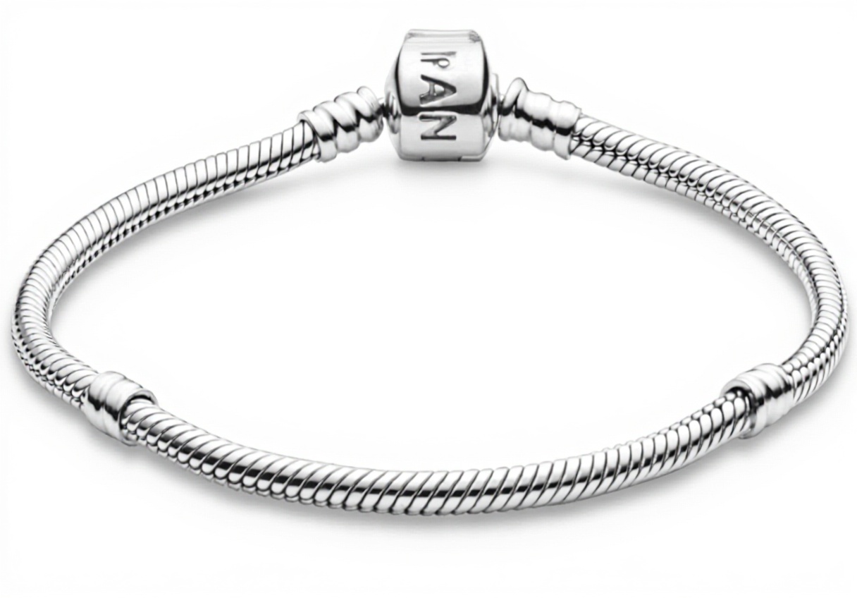 Disponibile in diverse lunghezze da 15 cm a 23 cm, il bracciale è adatto a vari polsi. Peso leggero e finitura in argento sterling lo rendono comodo da indossare tutto il giorno. Il modello è 590702HV, senza scatola inclusa, ideale per chi cerca un gioiello pratico e raffinato.