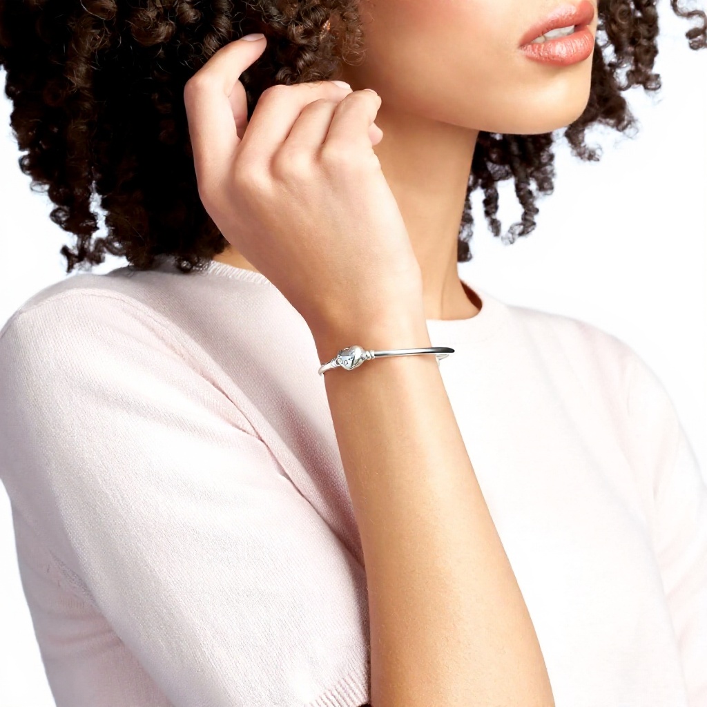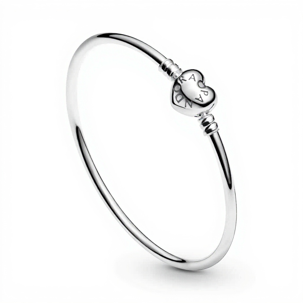 Il bracciale rigido PANDORA con chiusura a cuore in argento offre un design raffinato e una vestibilità regolabile, perfetto per completare ogni outfit. Realizzato senza gemme, si adatta a occasioni informali o eleganti, donando un tocco di classe alla tua collezione di gioielli. Un accessorio versatile che unisce stile e comfort per la donna moderna.