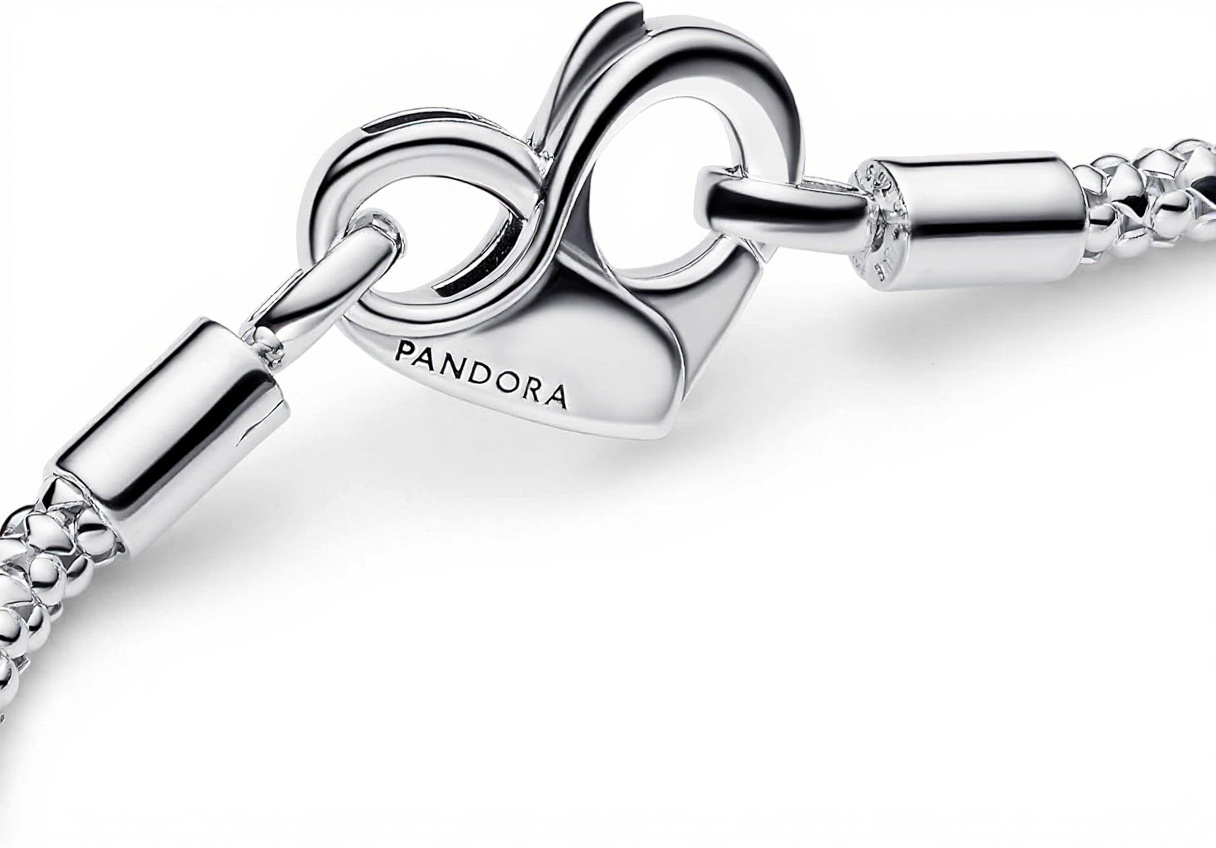 Il braccialetto PANDORA Moments presenta una maglia geometrica in argento sterling placcato a mano, con una catena flessibile e strutturata che garantisce comfort e durata. La chiusura a cuore include dettagli dell’infinito, facile da aprire, e all’interno un simbolo dell’infinito che aggiunge un tocco di significato. Progettato per essere personalizzabile, supporta fino a 14-18 ciondoli distribuiti in tre sezioni, offrendo un’esperienza unica di styling.