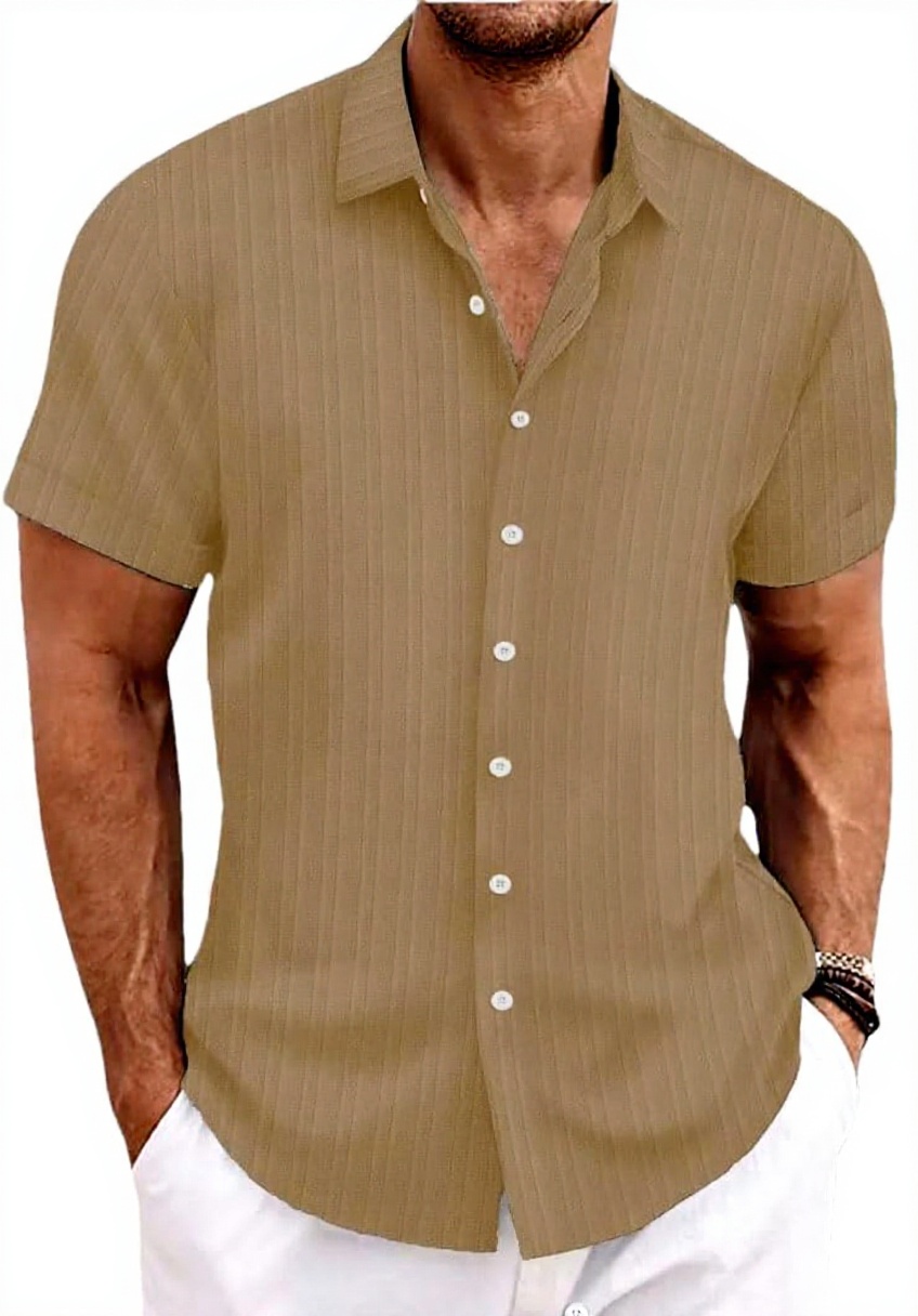 Disponibile in una vasta gamma di taglie, da S a 3XL, e colori come grigio, verde scuro, beige, nero, blu navy, khaki e caffè, questa camicia offre una vestibilità regolare che si adatta alla maggior parte dei tipi di corpo. Il tessuto leggero e resistente assicura durabilità, con un design button-down che mantiene la forma dopo numerosi lavaggi.