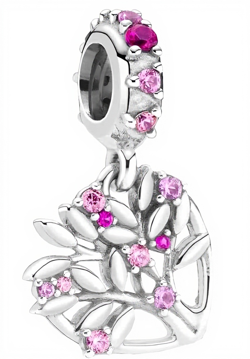 Il charm PANDORA Albero della Famiglia è un gioiello simbolico che rappresenta le tue radici e i legami affettivi. Con un design elegante a forma di cuore rosa, ospita un albero stilizzato le cui foglie si estendono oltre il profilo, arricchite da pietre rosa in diverse sfumature. Realizzato in materiali pregiati come argento sterling o placcato in oro, è compatibile con i bracciali Pandora Moments, permettendo di personalizzare la tua collezione con un tocco di significato emotivo.