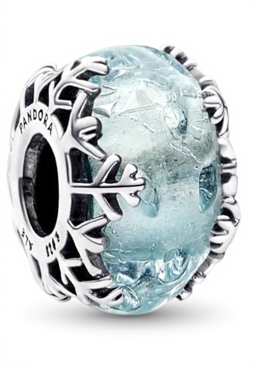 Il charm PANDORA Moments con fiocco di neve è realizzato in Argento Sterling 925 e vetro di Murano, offrendo un design artigianale di alta qualità. Presenta un fiocco di neve circondato da glitter all’interno di una sfera di vetro, creando un’atmosfera magica e festosa. I dettagli scanalati e in rilievo dei fiocchi di neve sulla base e lungo la sfera evidenziano la maestria nella lavorazione.