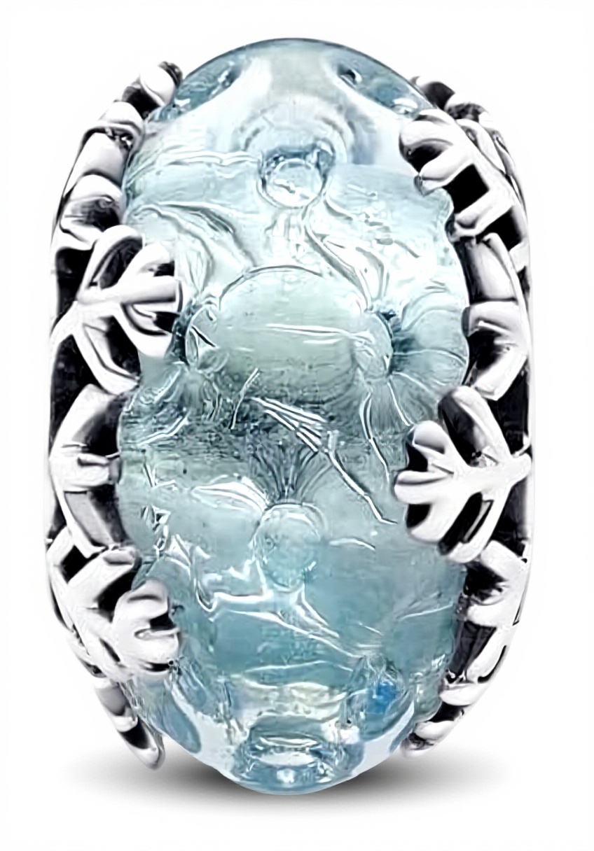 Il charm è realizzato in Argento Sterling 925 e vetro di Murano, garantendo qualità e resistenza nel tempo, con finiture scintillanti per un effetto luminoso.