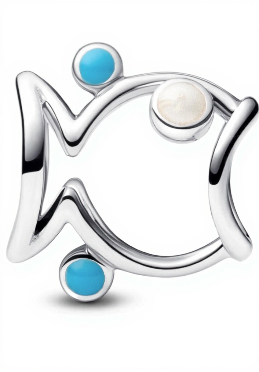 Il ciondolo Pandora a forma di pesce aperto è realizzato in argento Sterling di alta qualità, con dettagli smaltati che ne esaltano gli occhi e le pinne. Questo charm simboleggia felicità e protezione, ideale per esprimere un legame con il mare e la natura. La finitura precisa e duratura lo rende un accessorio elegante e significativo.