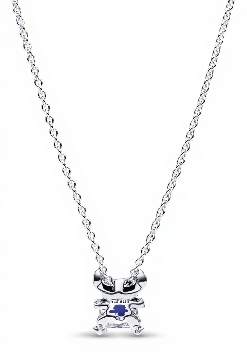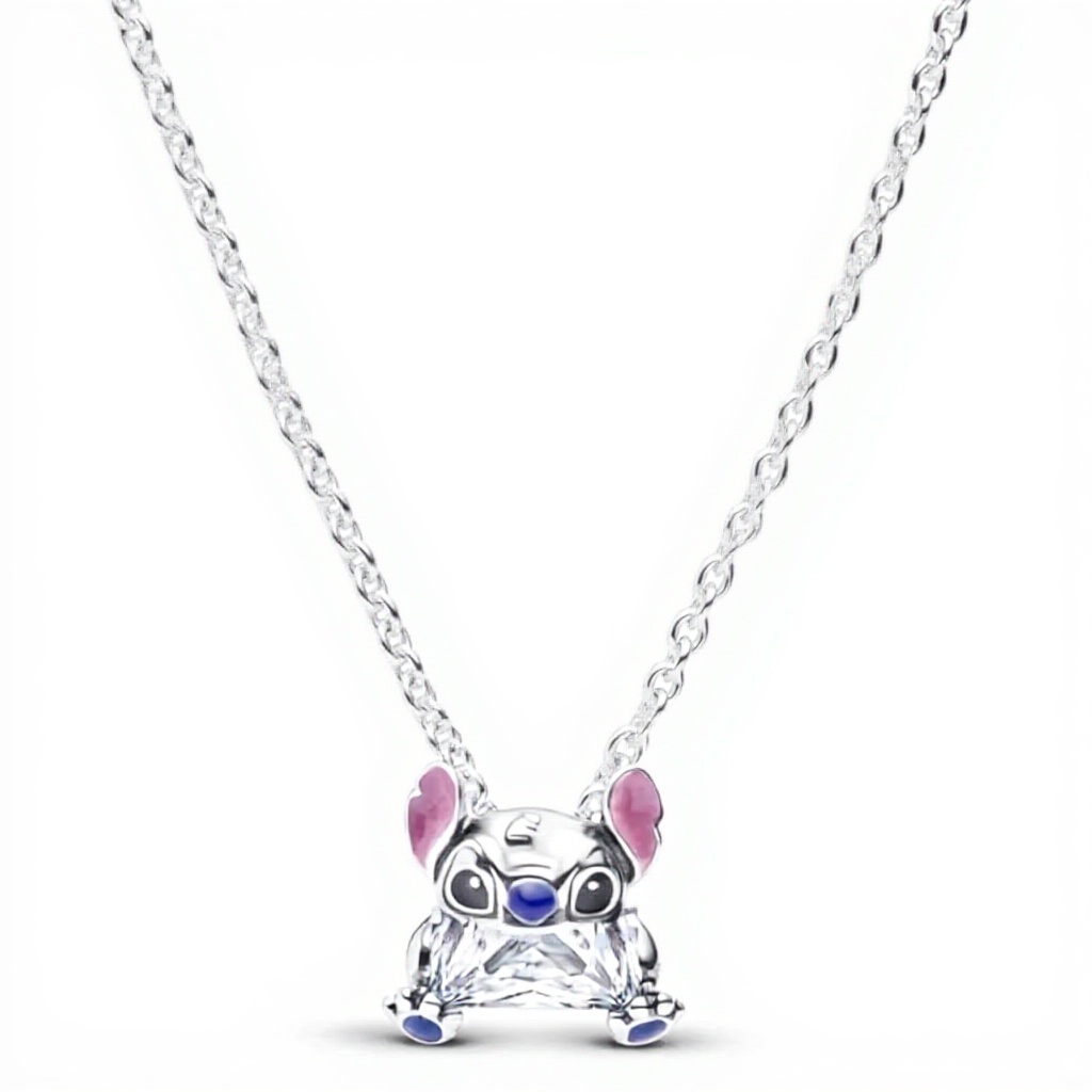 Questa collana incarna lo spirito giocoso di Disney Stitch, con un design smaltato colorato e uno zircone cubico trasparente che aggiunge brillantezza. Realizzata in argento sterling, è un gioiello artigianale che unisce qualità e fantasia.