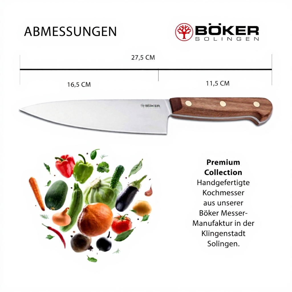 Questo coltello da Chef Boker combina una lama in acciaio di alta qualità con un manico in legno dal design ergonomico, offrendo un equilibrio perfetto tra resistenza e maneggevolezza. Ideale per chi apprezza strumenti di precisione in cucina.