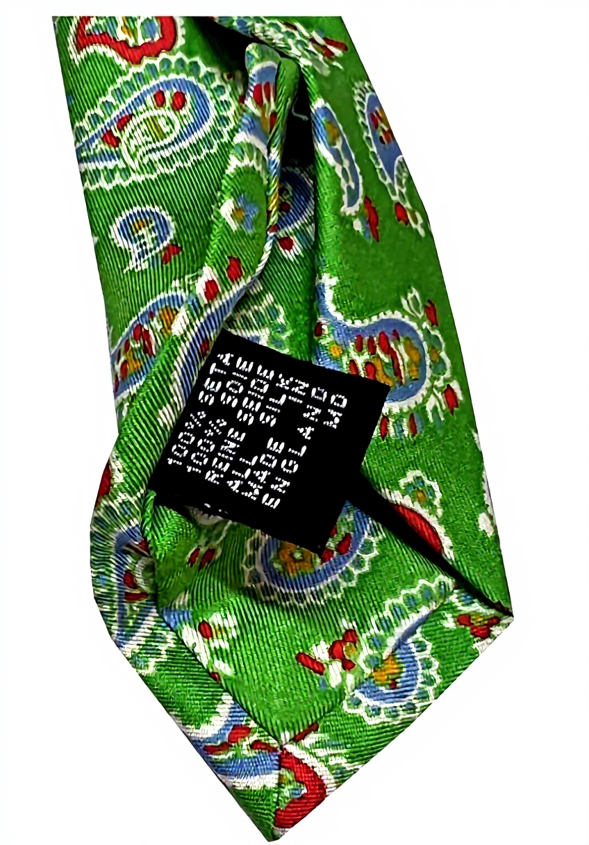 La cravatta è made in England, riflettendo una tradizione artigianale britannica che assicura qualità, attenzione ai dettagli e una manifattura duratura nel tempo.