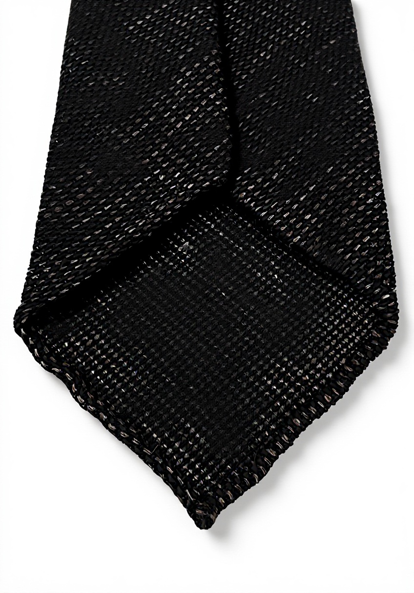 La cravatta misura 7 cm di larghezza ed è realizzata in 70% seta e 30% lino, garantendo leggerezza e resistenza. Prodotta nel Regno Unito, è priva di fodera interna per una vestibilità più naturale e flessibile, ideale per un look raffinato senza appesantimenti.