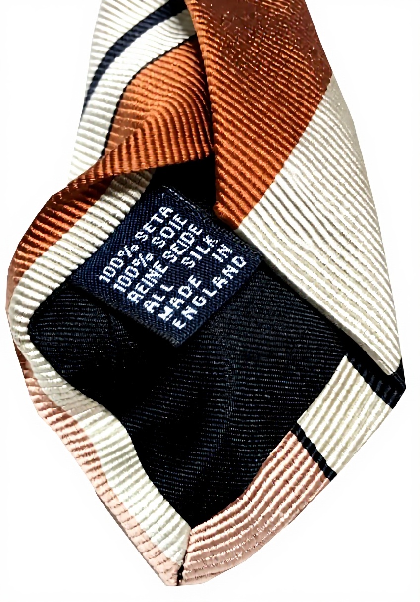 Questa cravatta di Drake’s London è realizzata in seta pura al 100%, offrendo una texture morbida e un aspetto raffinato. Il design presenta righe eleganti nei colori ecru, cuoio e nero, con una foderatura di alta qualità che assicura forma e durata nel tempo. Prodotta in Inghilterra, combina artigianalità tradizionale e stile contemporaneo.