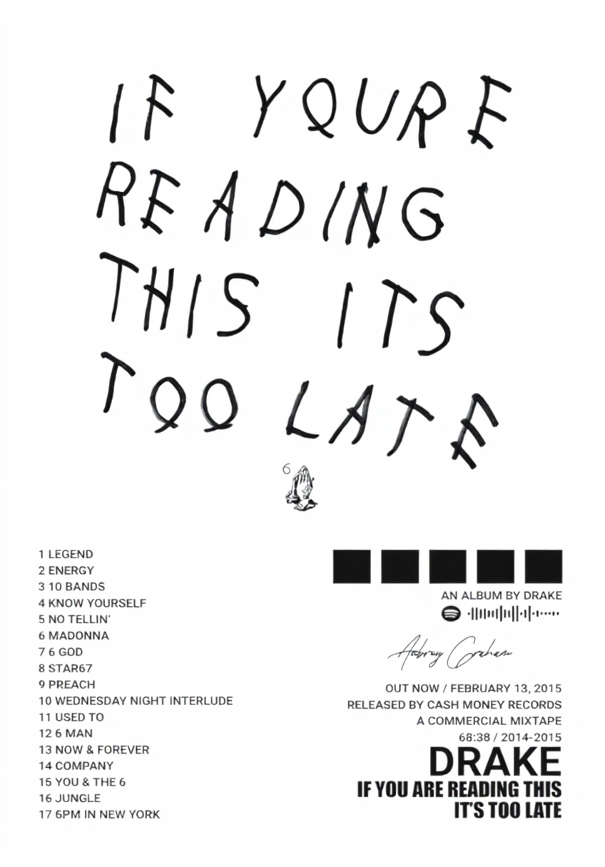 Drake Poster If You’re Reading This It’s Too Late con Targa Metallo Retrò