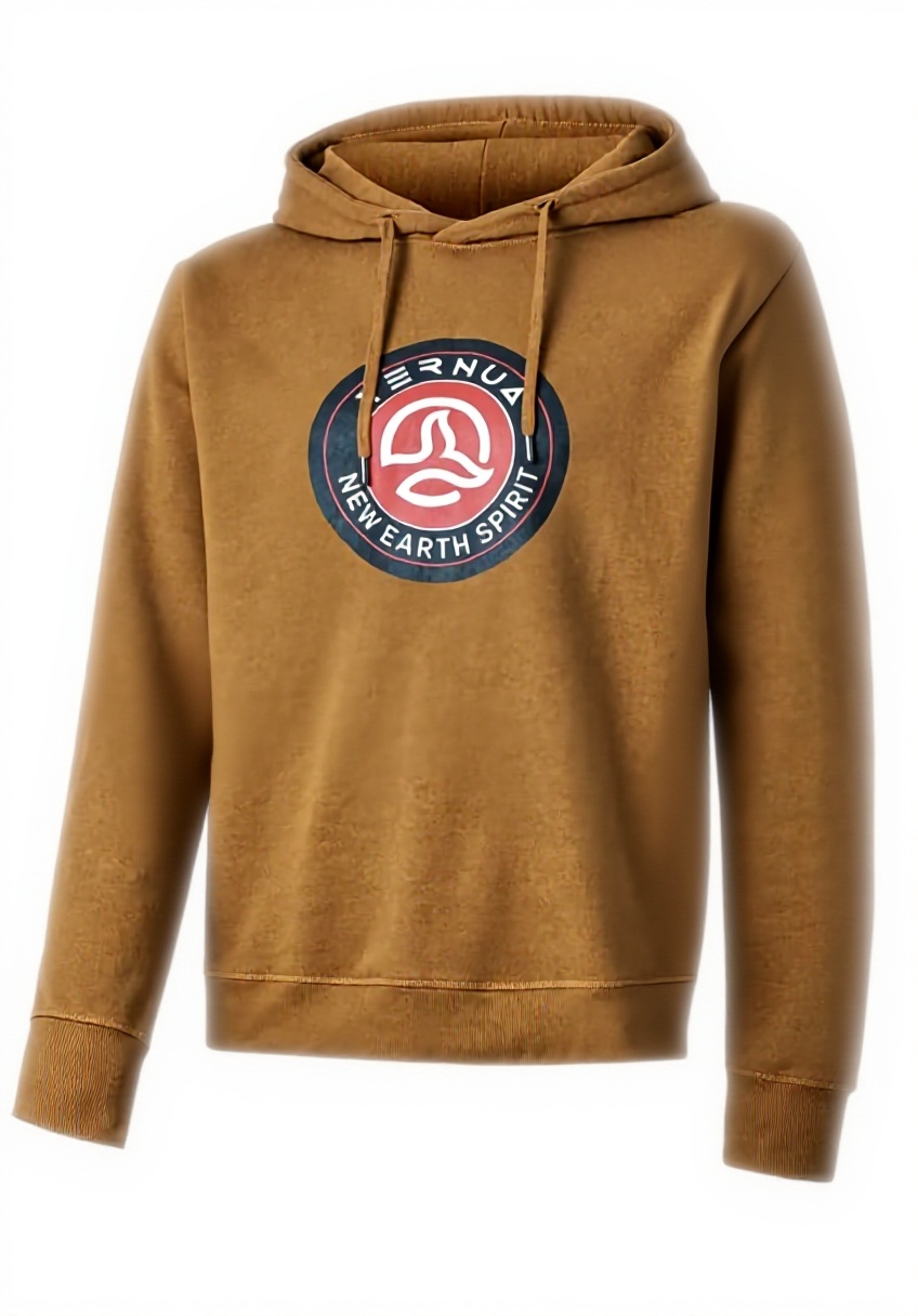Attualmente, la felpa è disponibile nel colore marrone dorato, un’opzione classica e versatile per l’abbigliamento uomo.
