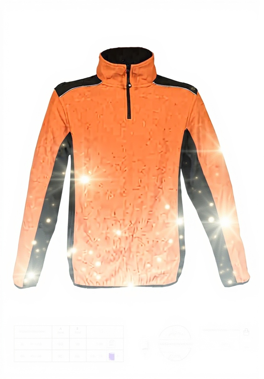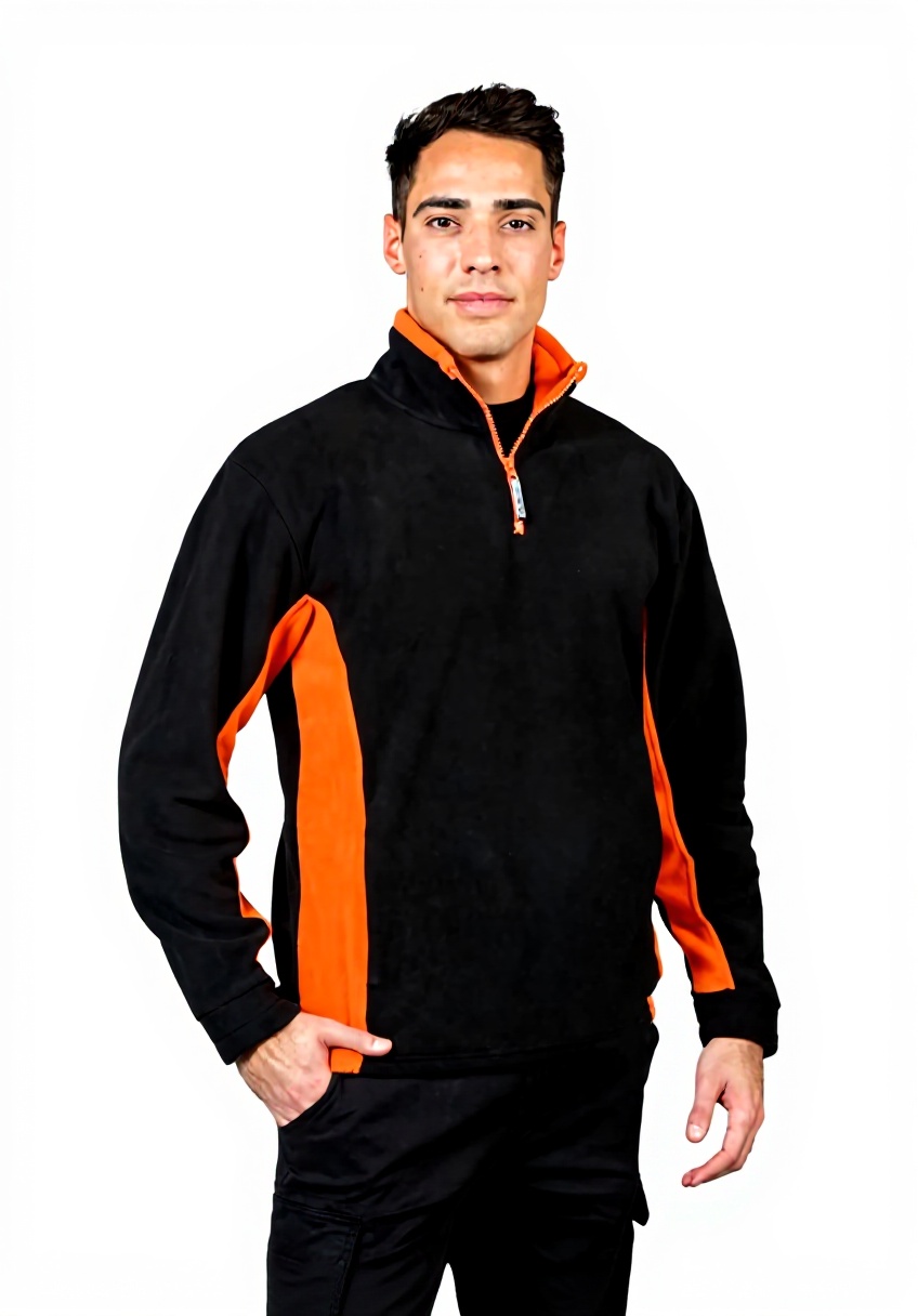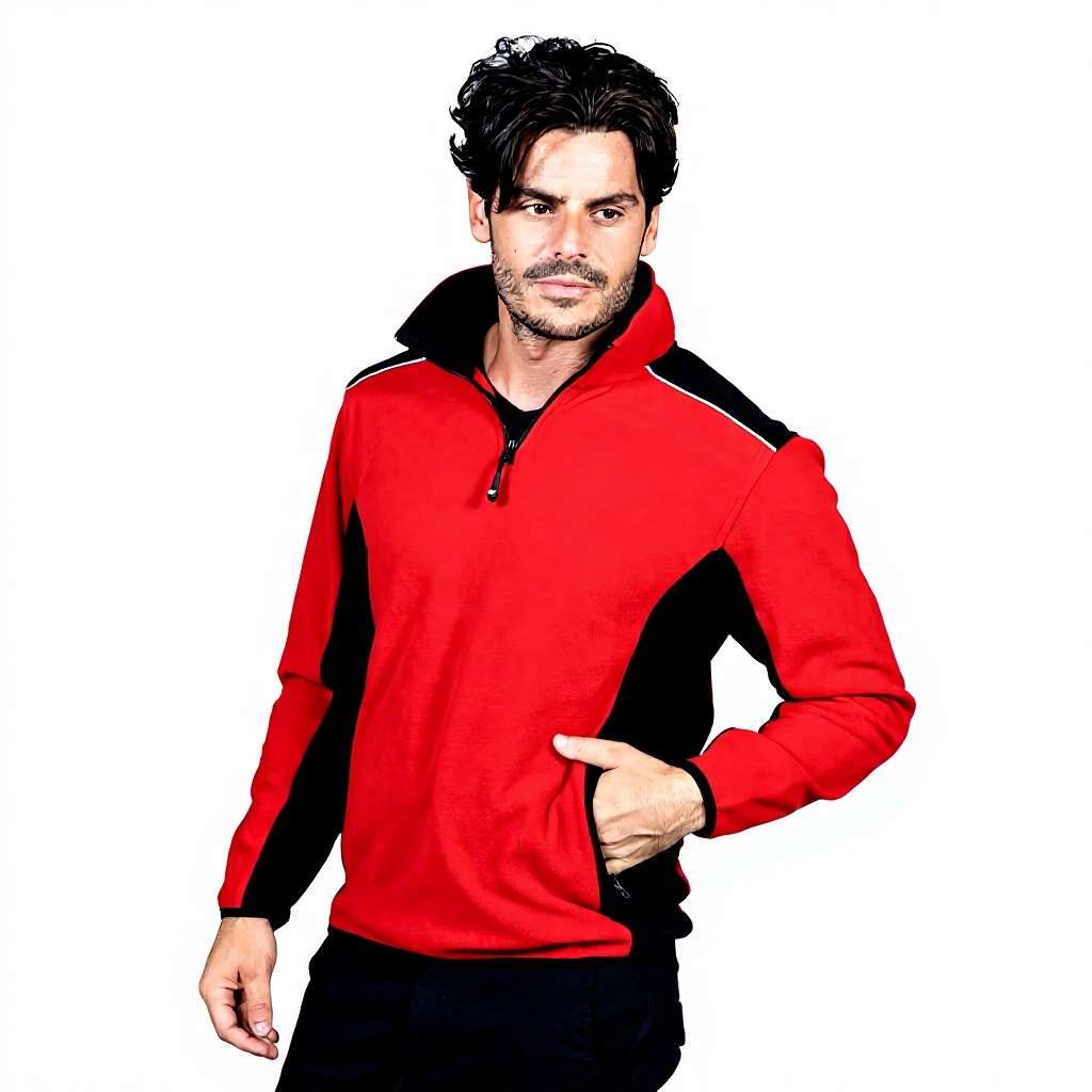 Questa felpa pile da lavoro è realizzata in poliestere riciclato antipilling, con peso di 280 grammi/mq. Include una mezza zip, piping rifrangente sulle spalle e schiena, tasca con zip sul petto e tessuto elastico ai polsi per massima comodità e funzionalità.