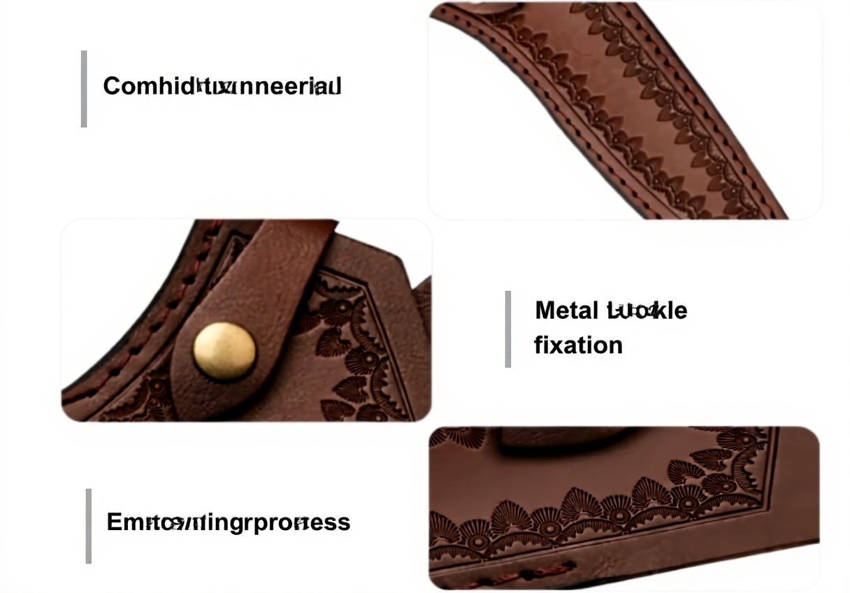 - Fibbia retrò in ottone anticato per un look classico e di alta qualità.