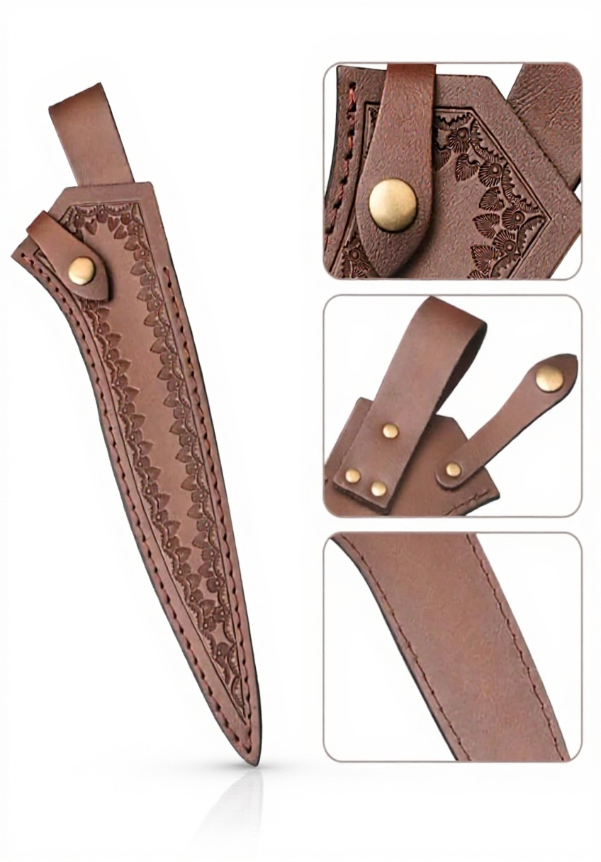 Ideale per escursioni, campeggio e attività all’aperto dove è necessario un accesso rapido al coltello. Il design a cassetta posteriore permette di fissarlo comodamente alla cintura, rendendolo pratico per trekking, pesca o lavori di giardinaggio. La resistenza della pelle lo rende adatto anche per uso quotidiano in ambienti rurali o per collezionisti di utensili.