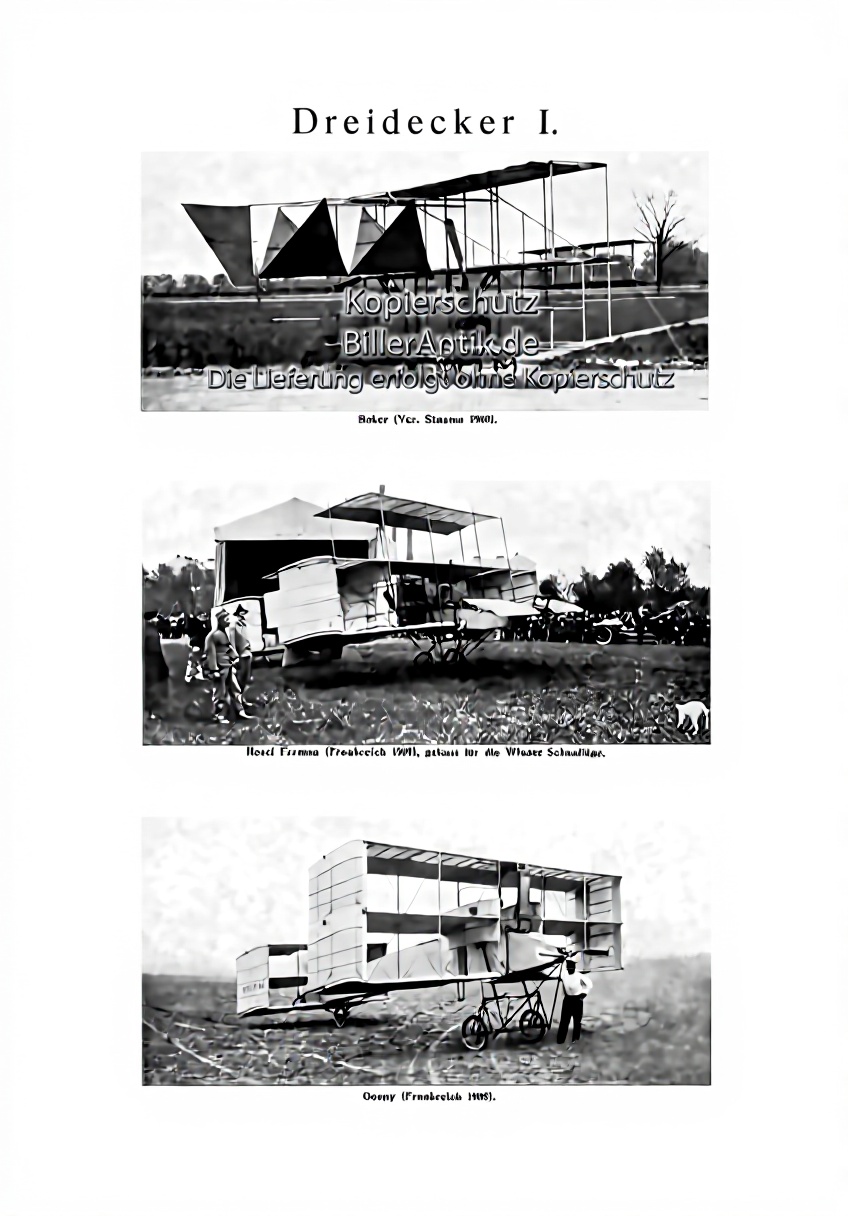 L’immagine rappresenta soggetti storici come il Triidecker Boker e Henri Farman Goupy, provenienti da archivi o collezioni vintage, curati da Biller Antik per garantire autenticità.