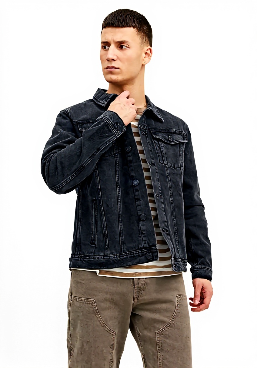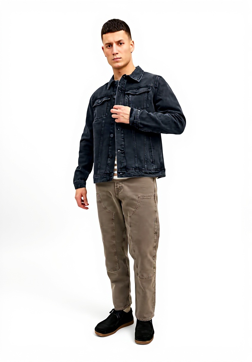 Disponibile in taglie da XS a XXL, con opzioni di colore Nero Denim e Blu Denim. Il modello è progettato per un fit regolare, ideale per chi preferisce un abbigliamento pratico senza sacrificare lo stile. Il materiale principale è denim di alta qualità, leggero e facile da abbinare.