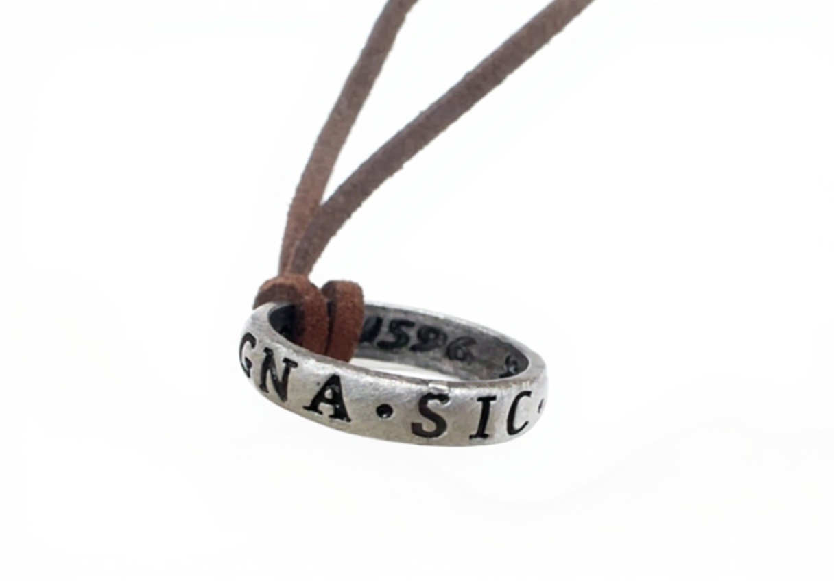 L’anello misura 2 x 0,5 x 2 cm, progettato per essere indossato comodamente come pendente della collana, senza risultare ingombrante.