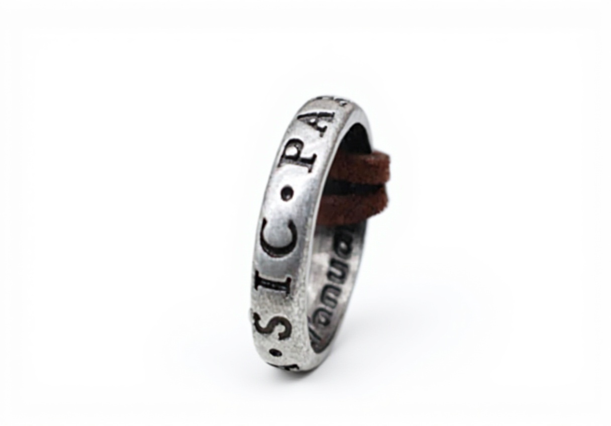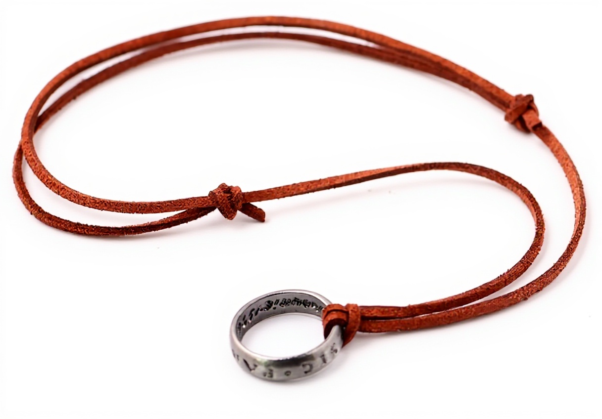 La collana misura 75 cm di lunghezza, con anello di dimensioni 2 x 0,5 x 2 cm e un peso di 100 grammi. Il materiale principale è una lega di zinco argentata, mentre la collana è in alcantara per una vestibilità morbida e resistente. Prodotta da Giuly’s Creations, è disponibile dal luglio 2017 e include un pratico sacchetto regalo.