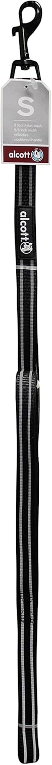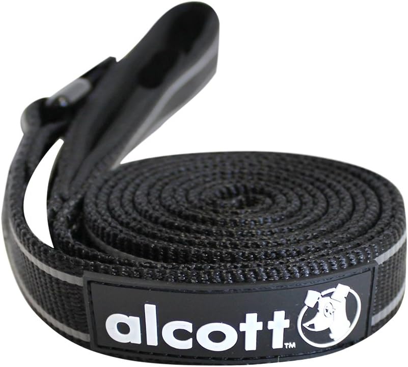 Il guinzaglio Alcott Adventure Essentials si distingue per i suoi accenti riflettenti su entrambi i lati, realizzati in nylon resistente, che garantiscono visibilità in condizioni di scarsa illuminazione. Completa il design una clip moschettone in metallo nero per una chiusura sicura e una maniglia imbottita in neoprene, offrendo una presa confortevole durante l’uso.