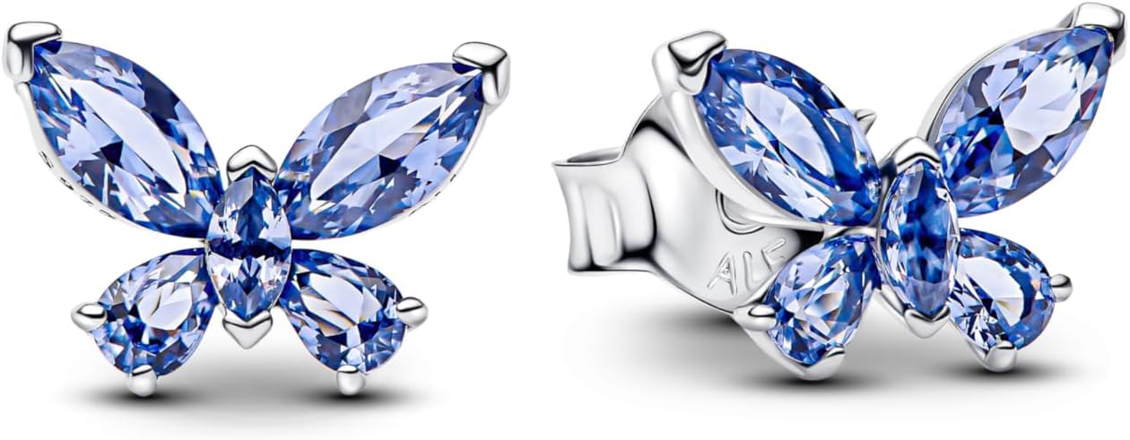 Gli orecchini a perno Pandora a forma di farfalla in argento sterling con cristalli artificiali blu aggiungono un tocco di fantasia al tuo stile. Realizzati a mano per garantire qualità e dettagli raffinati, sono perfetti per creare combinazioni uniche con i tuoi gioielli preferiti. Ideali per donne che amano esprimere la propria personalità con eleganza e creatività.