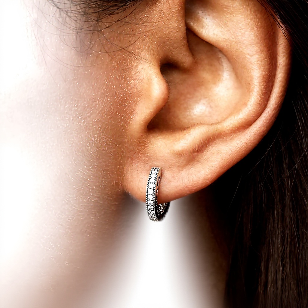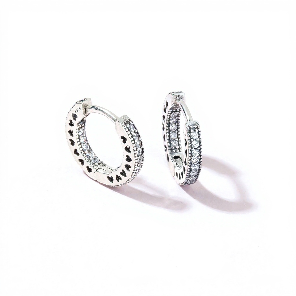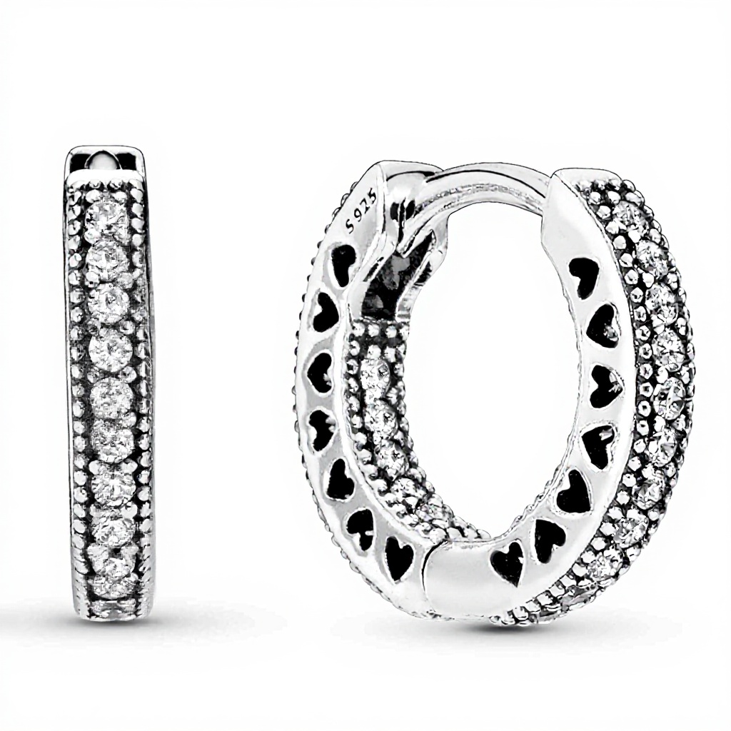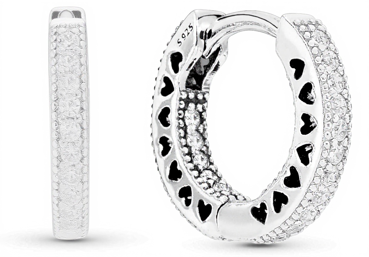 Questi orecchini PANDORA combinano cerchi eleganti con cuori decorati a pavè di zirconia cubica trasparente, realizzati in argento sterling per durabilità e brillantezza. Il design unico unisce romanticismo e modernità, con finiture levigate che garantiscono comfort e resistenza nel tempo.