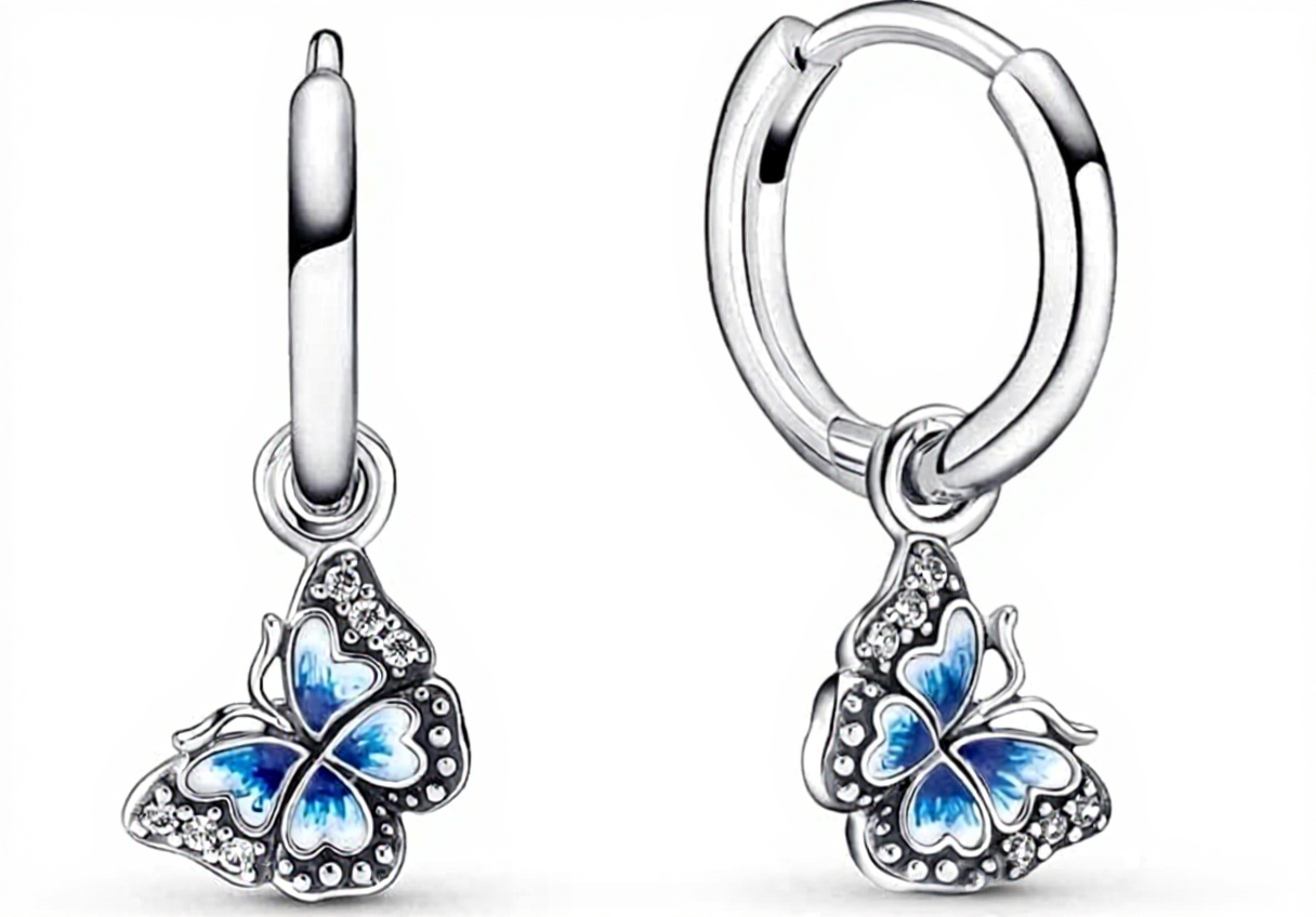 Ideali per occasioni speciali come feste, cerimonie o momenti di trasformazione personale, questi orecchini si abbinano perfettamente a charm coordinati con farfalle blu, aggiungendo un tocco di eleganza e colore a qualsiasi outfit, sia casual che formale.