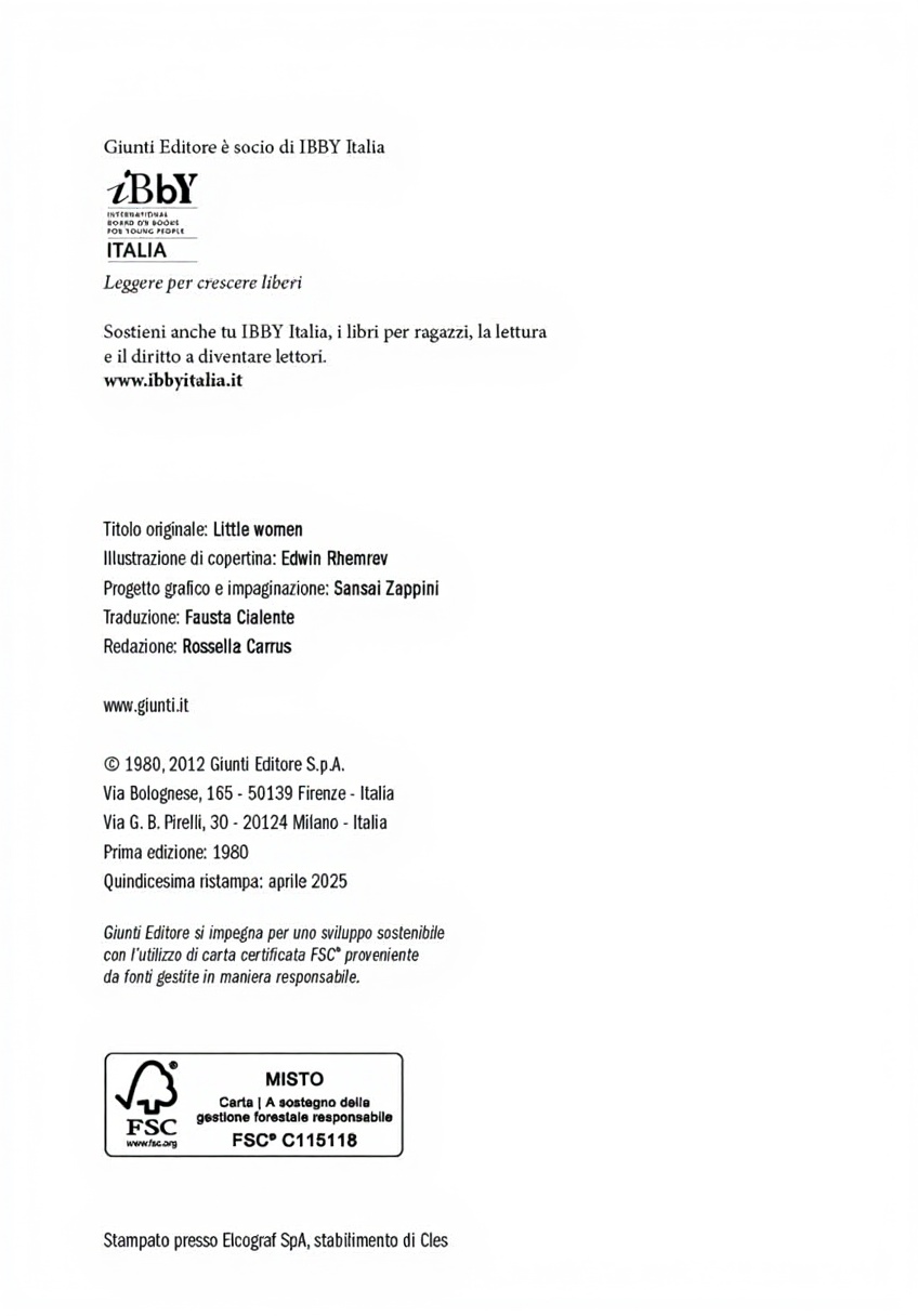 Piccole donne, pubblicato da Giunti Editore, è un’edizione in italiano che riporta il classico della letteratura per ragazzi. Con 416 pagine, questo libro è stampato su carta di qualità, offrendo una lettura piacevole e duratura nel tempo.