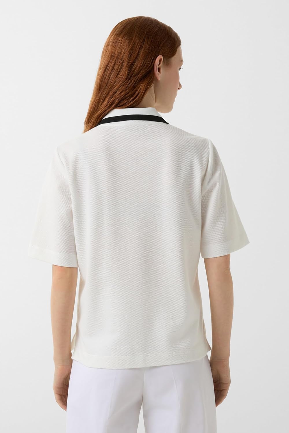 Disponibile in taglie come L e 44, e nel colore Bianco, la polo offre un taglio contemporaneo con maniche corte e lunghezza media. Il materiale è selezionato per durare nel tempo, assicurando forma e colore anche dopo numerosi lavaggi.
