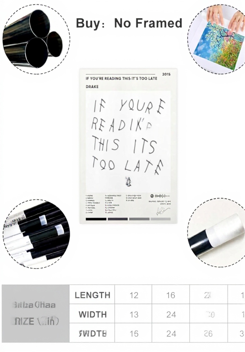 Questo poster artistico raffigura Drake con la copertina dell’album ‘If You’re Reading This It’s Too Late’, stampato su tela di alta qualità con inchiostri eco-solventi impermeabili. La stampa ad alta risoluzione garantisce dettagli nitidi e colori vivaci, resistenti ai raggi UV e allo sbiadimento per oltre tre anni.