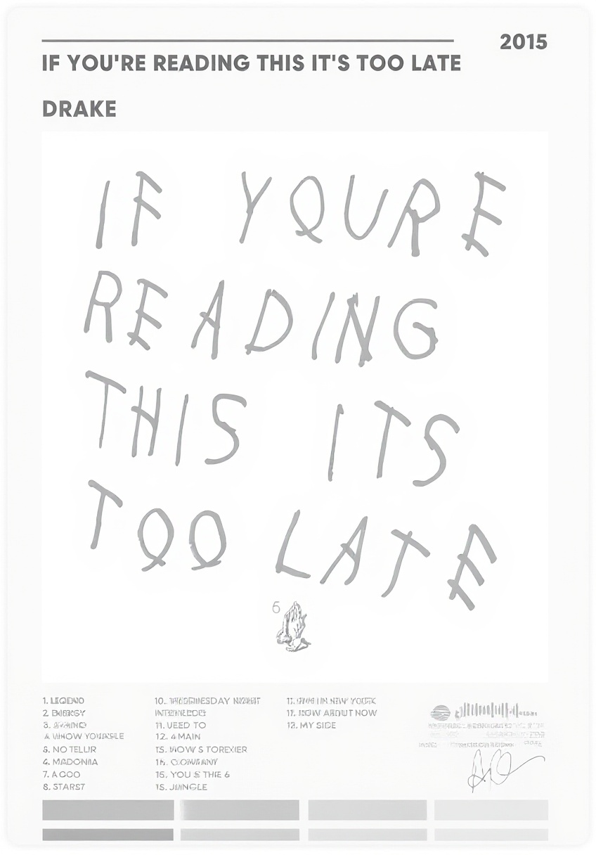 Poster di Drake su Tela If You’re Reading This It’s Too Late