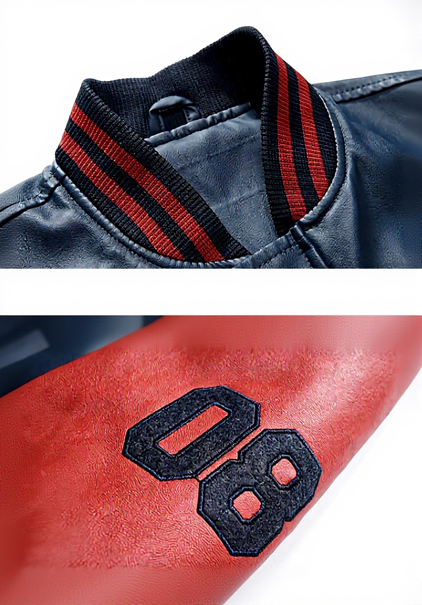 Il collare è fisso e rialzato, progettato per uno stile classico da giacca baseball, senza regolazioni aggiuntive.
